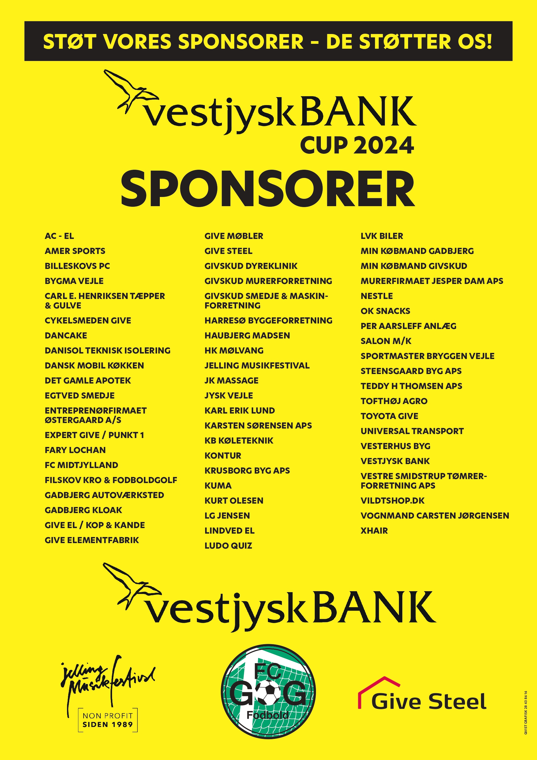 Kæmpe tak til alle vore mange sponsorer til Vestjysk Bank Cup 2024!